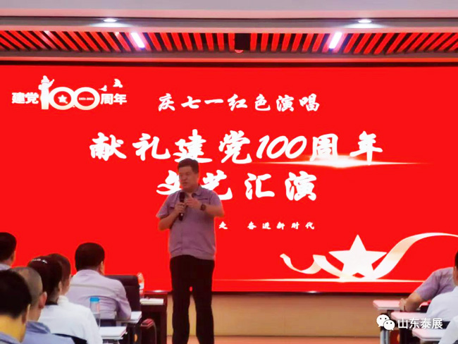 為隆重慶祝中國(guó)共產(chǎn)黨成立100周年,進(jìn)一步加山東泰展機(jī)電科技股份有限公司黨員隊(duì)伍的建設(shè)。6月30日18點(diǎn),山東泰展機(jī)電科技股份有限公司結(jié)合“學(xué)黨史、知黨情、強(qiáng)黨性”的總體思路,以“百年禮贊頌黨旗,同心起航唱紅歌”為主題,組織公司員工歡聚一堂,通過(guò)唱紅歌、詩(shī)朗誦等表演形式慶祝中國(guó)共產(chǎn)黨成立100周年,加強(qiáng)公司職工及黨支部成員對(duì)黨的光輝歷史的了解,促使公司職工積極向黨組織靠攏,增強(qiáng)愛(ài)黨愛(ài)國(guó)的責(zé)任感和使命感。